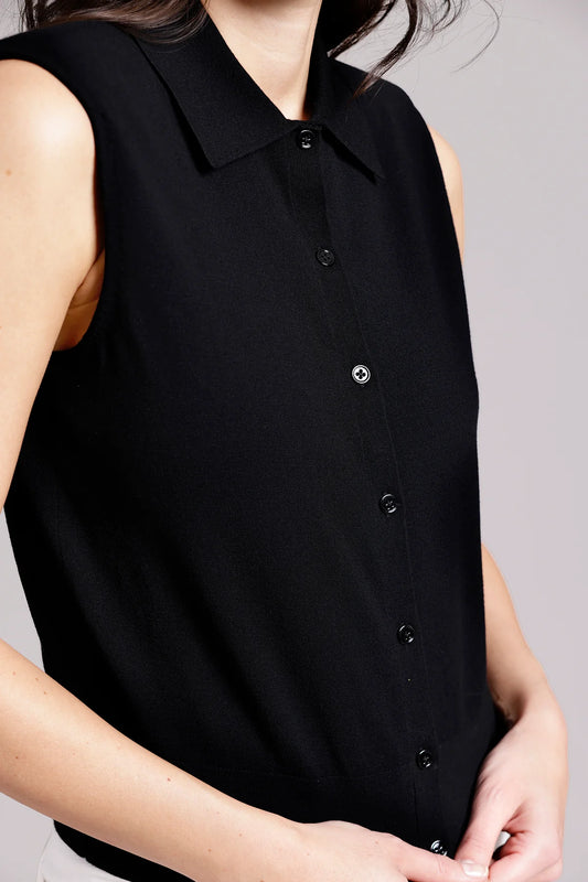 Cotton Cashmere Short Sleeve V-Neck With Collar