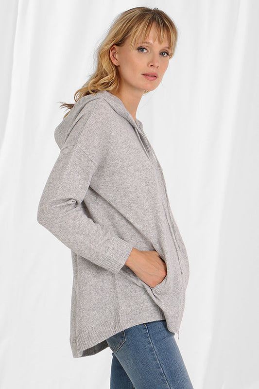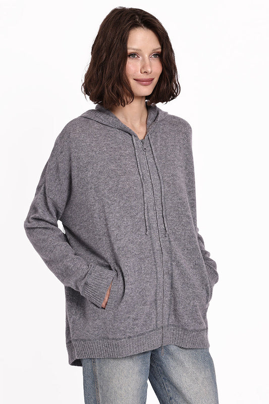 Minnie Rose Cashmere Oversized Zip Hoodie, Grey Shadow