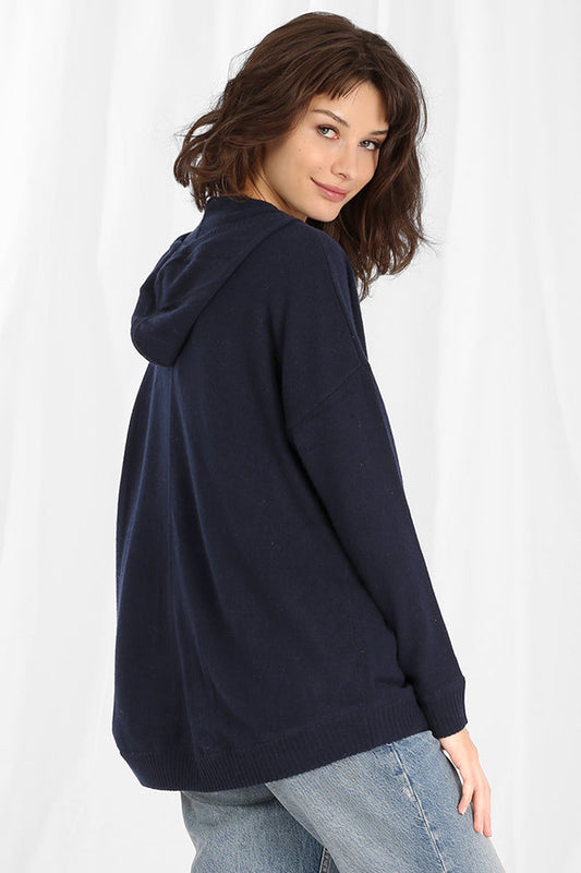 Minnie Rose Cashmere Oversized Zip Hoodie, Navy