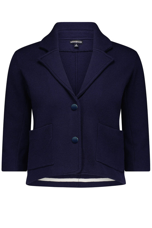 Minnie Rose Cotton Blend (Knit yet fully constructed) Shrunken Blazer, Navy