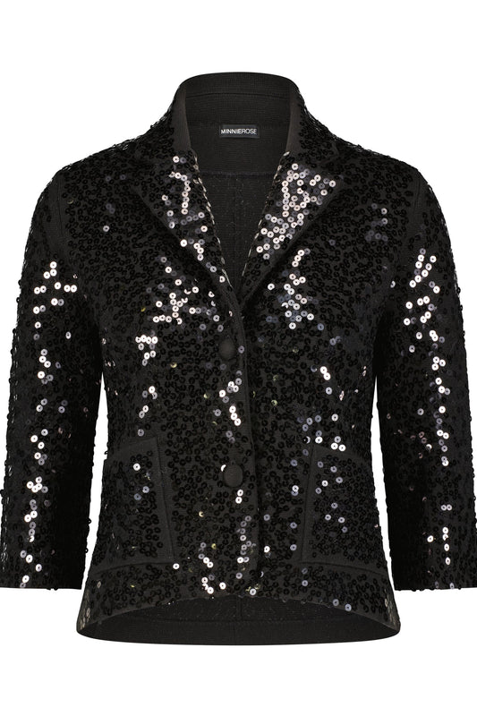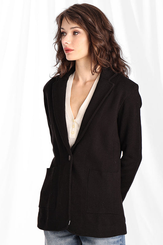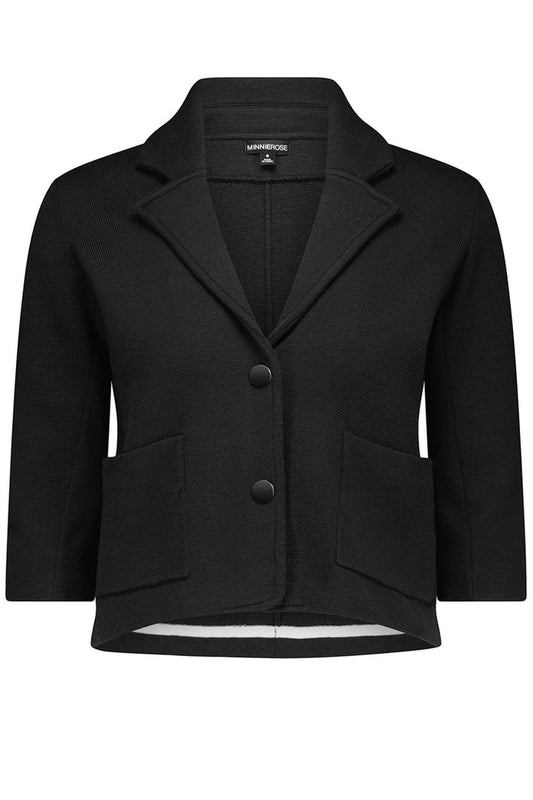 Minnie Rose Cotton Blend Shrunken (Knit yet fully constructed)Blazer, Black