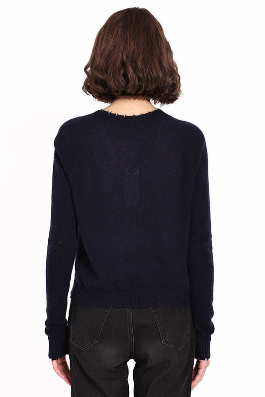 Minnie Rose Cashmere Frayed Edge V-Neck Sweater, Navy