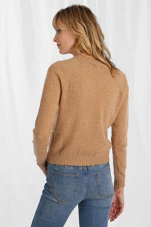 Minnie Rose Cashmere Frayed Edge V-Neck Sweater, Camel