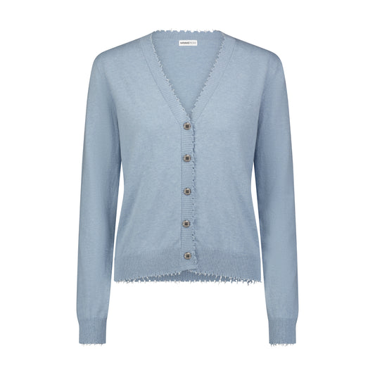 Minnie Rose Cotton Cashmere Frayed Cardigan- Fresco Blue
