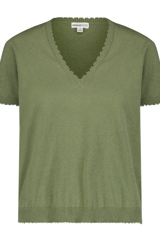 COTTON CASHMERE FRAYED V-NECK TEE- GARDEN GROVE