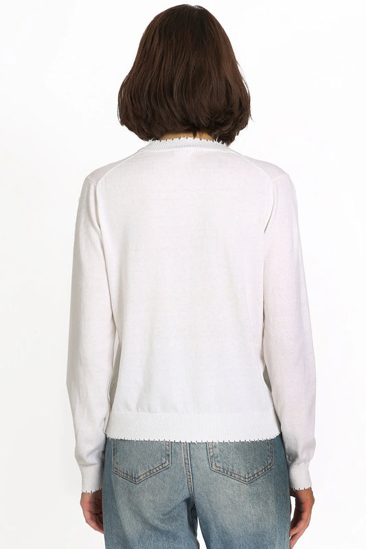 Minnie Rose Cotton Cashmere Frayed Cardigan- White